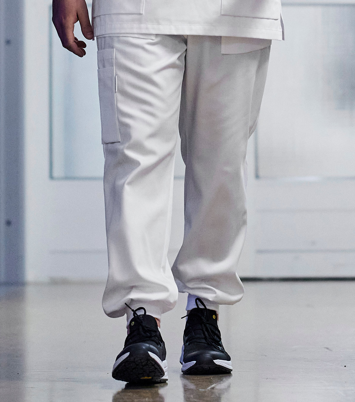 En bekväm och funktionell arbetsbyxa med mudd nertill. Resår och dragsko i midjan. Två framfickor och benficka med telefonficka för förvaring av tillbehör du behöver under din arbetsdag. Plagget är anpassat för höga tvättemperaturer. Innerbenslängd XX cm i stl M (kort modell).