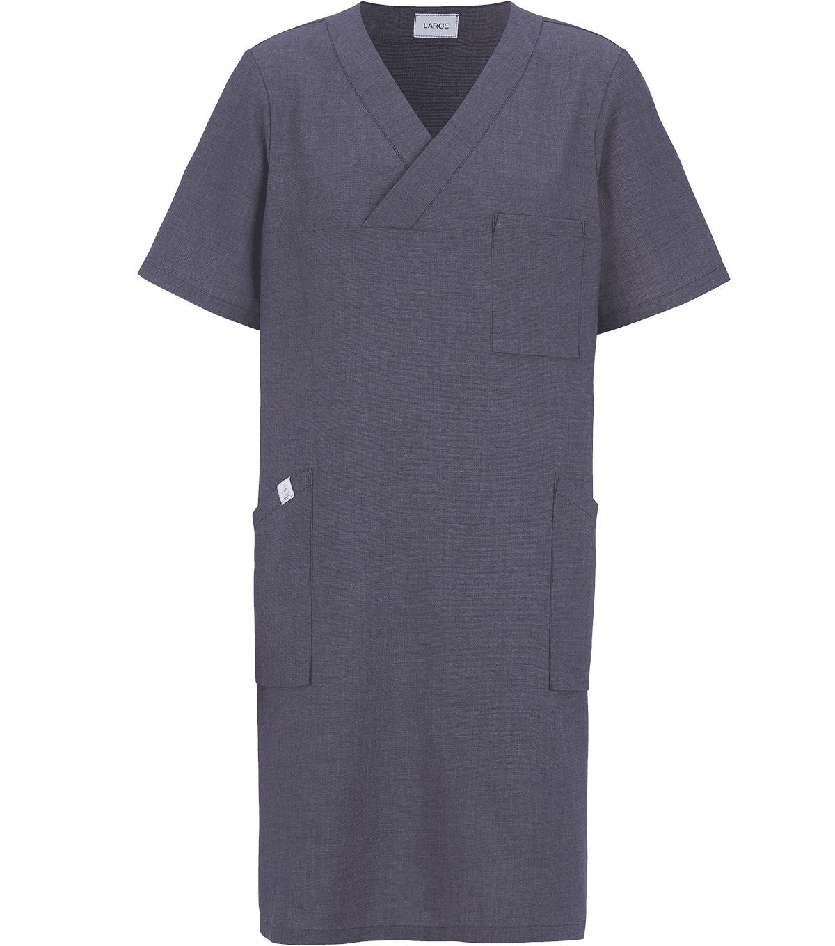 Bekväm klänning med en bröstficka på vänster sida och två framfickor för förvaring av tillbehör. Plagget är anpassat för höga tvättemperaturer. Matcha klänningen med ett par vita byxor eller stödstrumpor. Längd mitt bak X cm i storlek M.