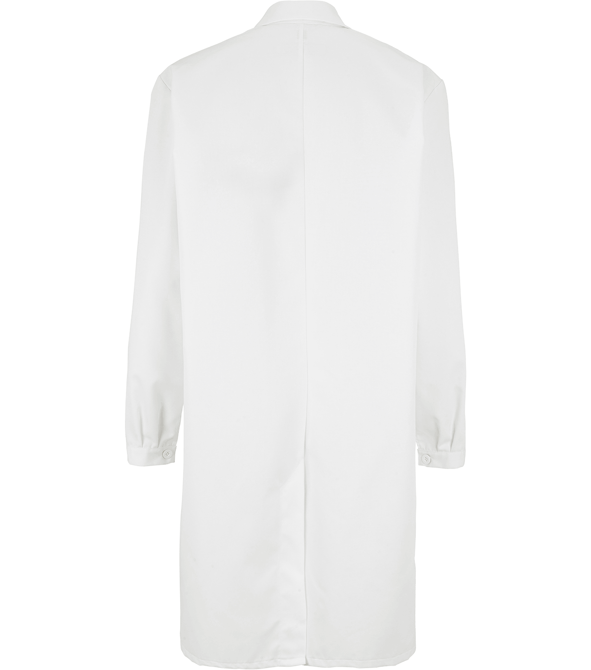 En bekväm rock i unisexmodell. Knäpps med knappar fram. Flera fickor för förvaring av alla tillbehör du behöver under din arbetsdag. Plagget är anpassat för höga tvättemperaturer. Längd mitt bak 104 cm i stl M.